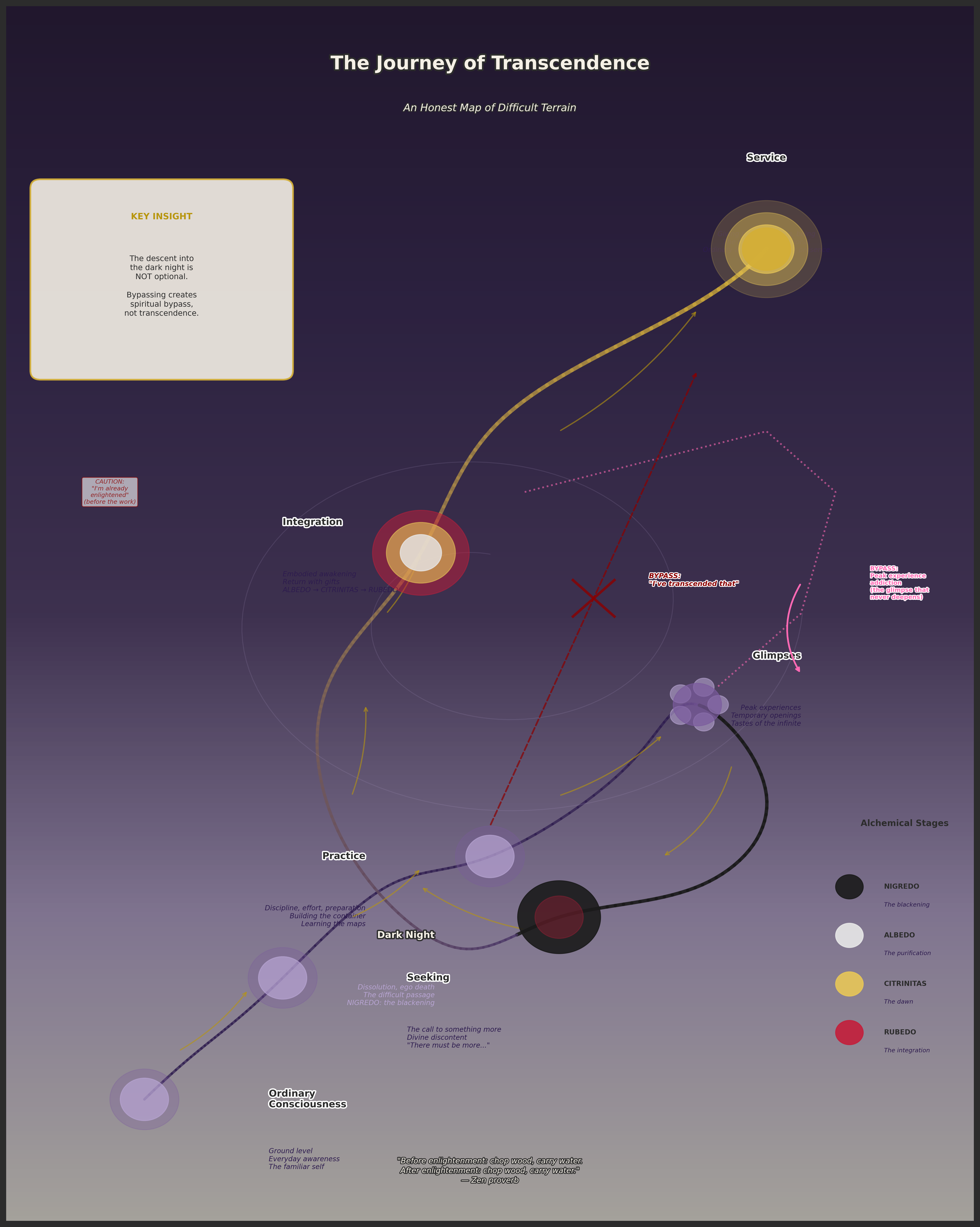 The alchemical tradition provides perhaps the clearest map of the transcendence process: